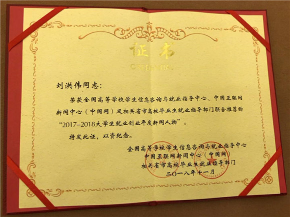 11月7日,2018年高校毕业生就业创业研讨会暨2018年度全国创新创业典型经验高校经验交流会在杭州举办,我校创新创业学院常务副院长张立志代表学校获颁“2018年度全国创新创业典型经验高校”荣誉奖牌。我校博士生、东深科技创始人刘洪伟作为2017-2018大学生就业创业年度新闻人物(全国20强)出席会议并获颁荣誉证书及奖杯。
