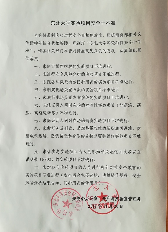 东北大学实验项目安全十不准