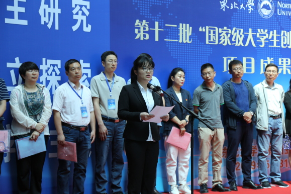 开幕式上,与会师生欢聚一堂,见证累累硕果,分享收获喜悦。来自《基于Keggin多酸的杂化材料的制备及抗生素吸附性能的研究》项目的陆薇同学代表本批项目的项目成员做结题发言,分享一年来的科研经历,展示项目进展与实施成效。校团委书记闫研,研究生院副院长兼党委研究生工作部部长刘宏林受邀为东北大学第三届科研日志评选大赛一等奖获奖选手颁奖。165个参展项目现场展示了项目研究成果,涉及创意设计、新能源、新材料、软件开发、绿色冶金、生物医学、电子信息、虚拟现实、机器人等多个领域,吸引了大批师生驻足观看。