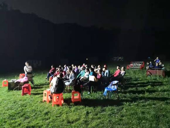 晚上导师分别分享了跟队一天的感触并对同学们团结、吃苦的精神进行了肯定。同学们也分享了一天活动和比赛中关于责任、环节与努力的感悟。之后牛晋老师在露天场地为大家进行历届优质项目的分享评点。