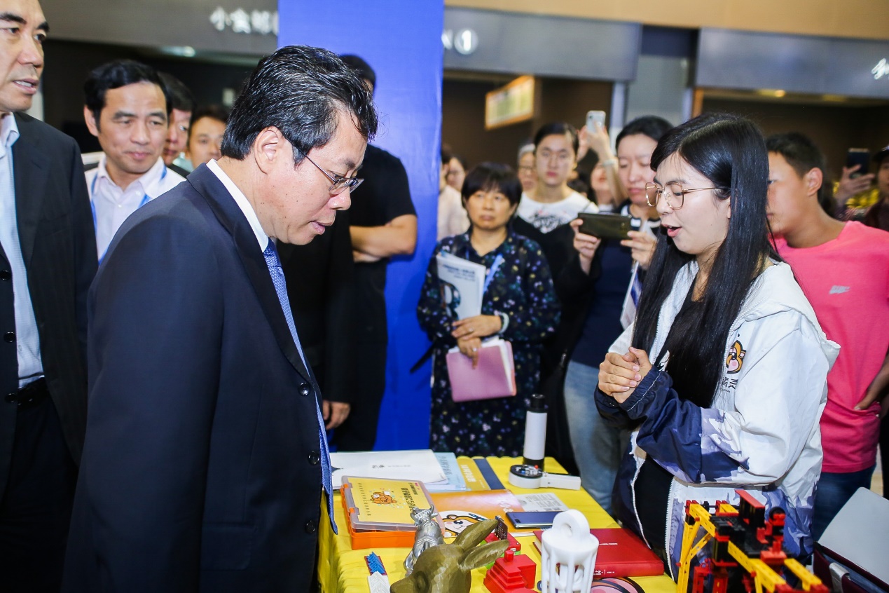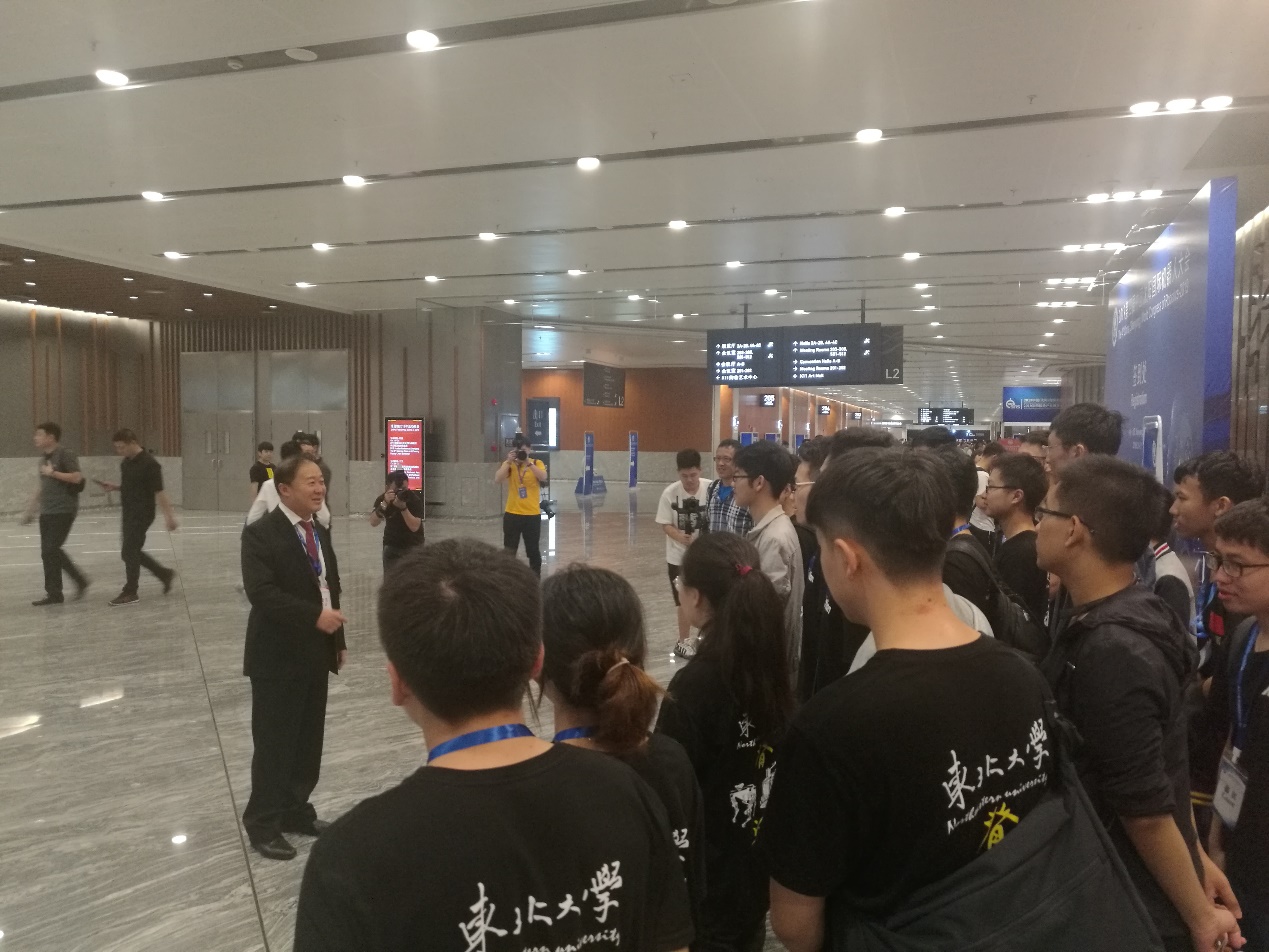 开幕式当天,沈阳市市长姜有为等领导一行十余人专程来到东北大学展区,了解学生企业发展状况并给予鼓励。当了解到四个学生团队均已成立企业并实现产业化时,姜市长给予了高度的肯定,并鼓励学生继续在人工智能领域探索,实现高层次人才在高科技产业中的价值。