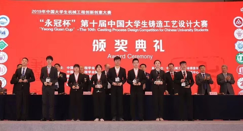 2019年10月30日,由中国机械工程学会、中国机械工程学会铸造分会、教育部高等学校机械学科教学指导委员会和中国机械工业教育协会等单位联合主办的“永冠杯”第十届中国大学生铸造工艺设计大赛颁奖仪式在武汉中国光谷科技会展中心举行,我校材料科学与工程学院材料成型与控制工程专业学生6项参赛作品均获得一等奖,并包揽比赛前三名,这是我校在该项赛事上取得的最好成绩,比赛成绩在各大高校中独占鳌头。