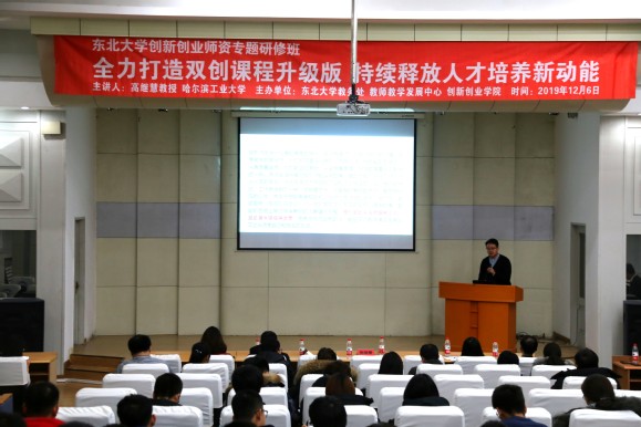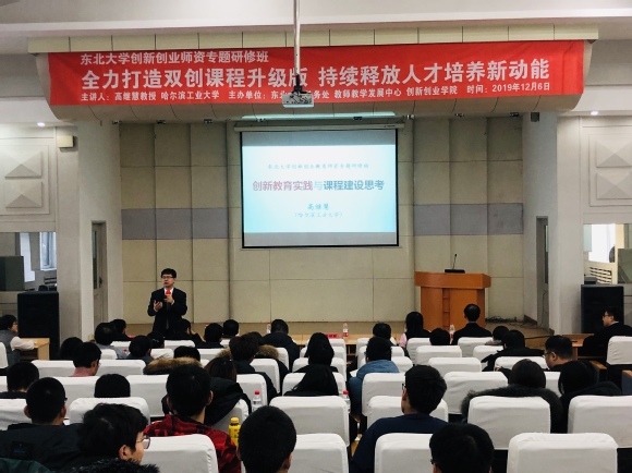 12月6日,在东北大学南湖校区图书馆报告厅,由东北大学教务处、教师教学发展中心、工会及创新创业学院联合举办的东北大学创新创业师资专题研修班正式开班。培训邀请了教育部创新创业教育指导委员会委员,哈尔滨工业大学创新创业教育委员会主任高继慧教授做主旨报告,题为“创新教育实践凝华与课程体系建设升华”。创新创业学院常务副院长孙秋野、副院长王刚、副院长黄达、工会副主席张琦以及一百余名师生一同参加本次培训。培训由黄达主持,孙秋野为高继慧老师颁发东北大学创新创业导师聘书,欢迎其加入到我校创新创业教育工作中来,期待未来加强沟通交流,不断促进双创教育工作的开展。