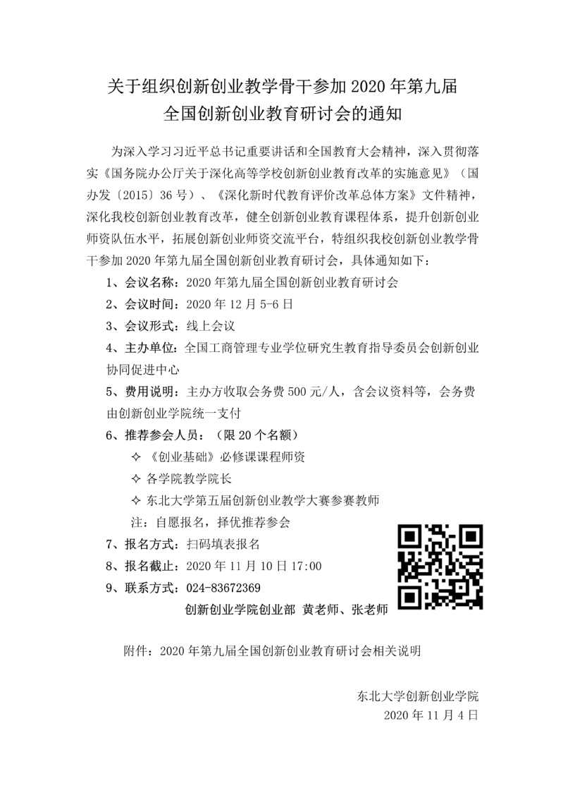 关于组织创新创业教学骨干参加2020年第九届 全国创新创业教育研讨会的通知