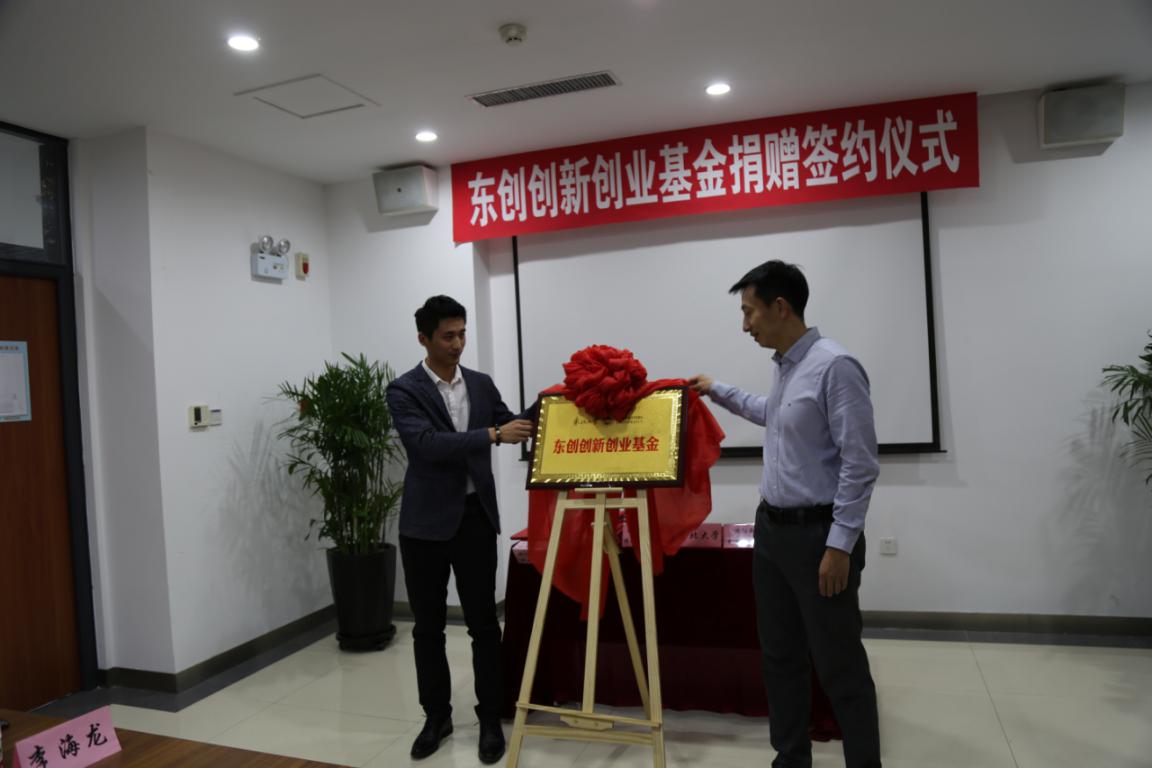 仪式由创新创业学院创业部部长黄晓颖主持,学生企业代表与张学良教育基金会代表刘佳签署了捐赠协议,孙秋野院长和吕宏岩总经理为基金揭牌。东创创新创业基金是由东创空间发起,东北大学所孵化的学生创业企业联合捐赠的公益基金,也是东北大学第一支由学生企业发起的基金,主要用于支持本科生开展应用型科技探索、校企合作创新项目和文创产品设计开发,一期基金30万元。