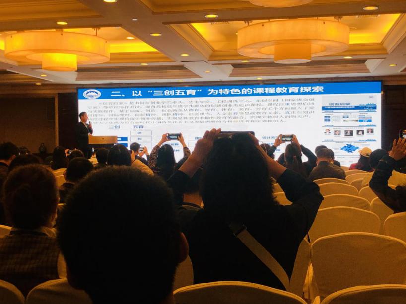 王刚院长在报告中强调,创新创业教育是高等教育中极具时代特色的重要一环,如何挖掘其思想政治教育元素、弘扬立德树人的时代价值、构筑协同育人的教育合力,成为高等教育所必须面对的重要育人课题。东北大学以入选教育部“三全育人”首批试点高校并全面开展三全育人建设工作为契机,打破原有体系框架,将课程重新规划为三个层级的全新创新创业教育课程体系,即以“混合广谱” 模式革新《创业基础》必修课,以“三创五育”为特色打造《创客启蒙》精品课,以“众创协同” 模式推广创新创业提升课,以“教赛融合 五育并举”模式打造创新创业实践课。报告内容引起大会强烈共鸣和反响。