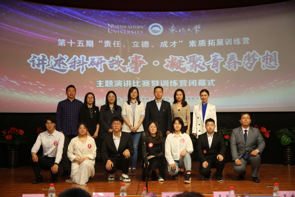 5月12日下午3:00,东北大学“讲述科研故事·凝聚青春梦想”主题演讲比赛暨第十五期“责任、立德、成才”素质拓展训练营闭幕式成功举办。东北大学学生工作处副处长韩磊、创新创业学院副院长王刚、校党委宣传部校报编辑部主任杨明、学生指导服务中心学生资助管理中心主任王威、校团委学生团体部部长关晓晨、艺术学院团委书记娄洹博、创新创业学院项目部部长朱翠兰以及第十五批“大学生创新训练计划”全体项目组成员参加此次活动。