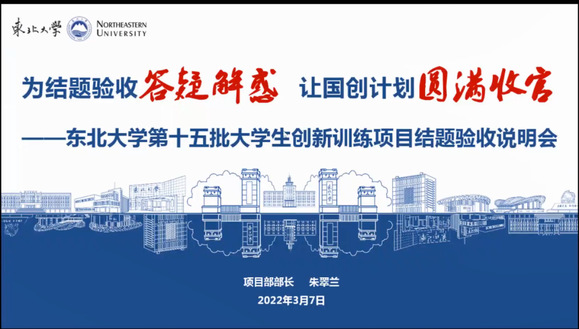 2022年3月23日-30日,东北大学第十五批大学生创新训练计划项目结题验收活动顺利举行。活动包括项目成果展及结题验收评审两个环节,来自全校各学院的214个项目,共计1000余名项目组成员参与了本次活动。