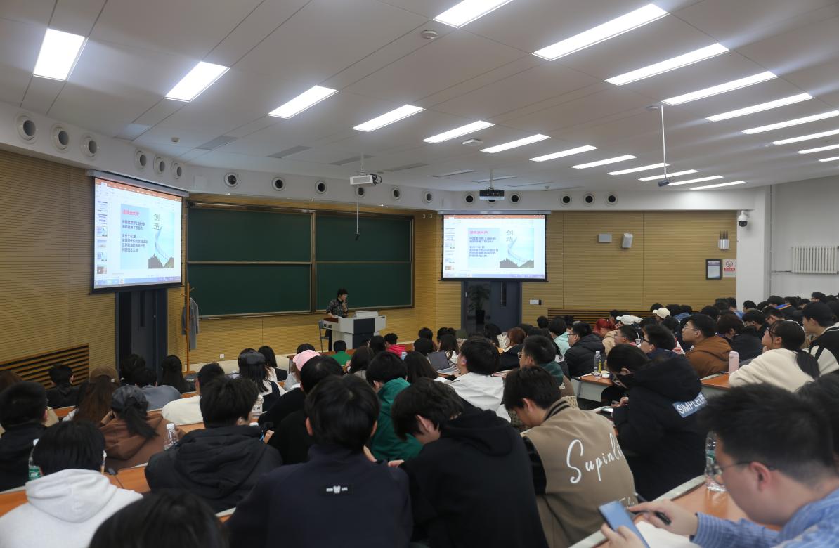 讲座伊始,张老师用“站坐反话”的逆向思维游戏活跃了现场气氛;随后她又通过“限时思考用途”互动环节,以寓教于乐的方式引领同学们深入理解发散思维的特性。创造性思维具有流畅性、灵活性和独特性。张老师认为,独特性的关键要素集中在思维独特、方式新奇的创新点,是创造性思维中最重要的特质,是同学们应该特别训练的一种思维能力。报告中,张老师与同学们一起回顾了国内乃至国际科学发展进程中的重大成就,从人类文明到国家振兴、从企业效益到个人发展,她用多角度多方位的实例,向同学们展示了事物发展进程中创新、创造思维的推动作用。在张老师的引导下,同学们逐渐打开了创新的新思路。