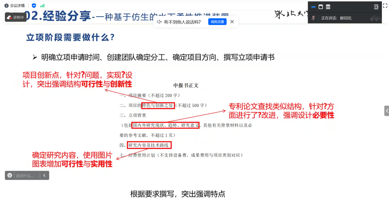 10月6日晚19:00,东北大学第八届“优创零距离”之“从创意到实践:大创国优项目经验分享”活动依托腾讯会议平台成功举办。活动邀请机械工程与自动化学院的崔欣欣进行项目经验分享,吸引了来自全校各学院众多学生积极参与。