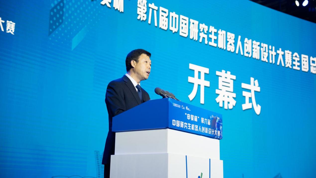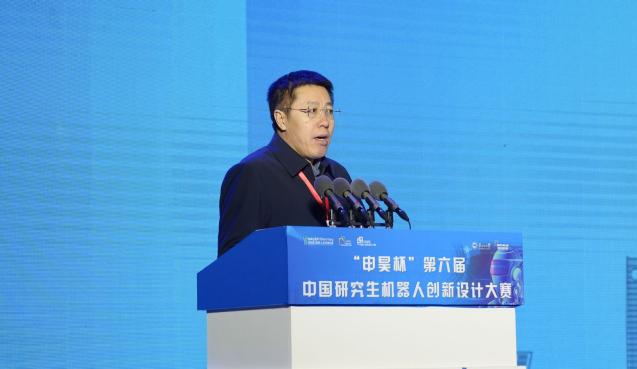 沈毅代表中国研究生机器人创新设计大赛组委会秘书处感谢各主办、承办及赞助单位的支持。沈毅强调,中国研究生机器人创新设计大赛是立足于培养机器人领域国家急需的高水平科技创新人才,以赛促教、以赛促学、以赛促创,用技术融合与概念创新推动“政产学研”深度融合,并希望更多科技型企业关注并支持大赛,通过“企业专项”命题,促进教育链人才链与产业链创新链有机衔接。