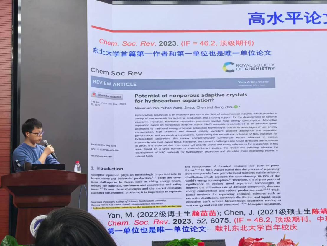 2024年10月26日下午18:00,东北大学第八届“优创零距离”之 “科创赋能:培养拔尖创新人才”主题报告会在南湖校区科学馆201成功举办。活动邀请东北大学理学院化学系教授、博士生导师周炯作专题报告,来自各学院的学生积极参加本次活动。