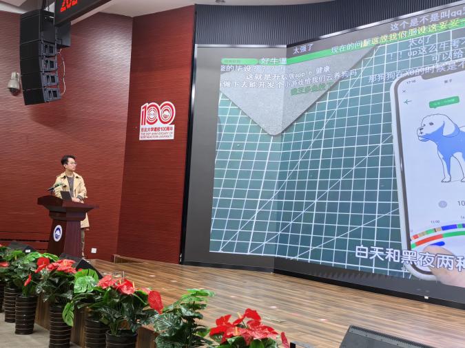 通过“我把代码写进狗狗的衣服里”的视频,崔秀文向大家生动展示了穿戴传感设备创新的全过程,以此引导学生从生活中汲取灵感,通过相关的专业知识实现产品创新设计。生动的展示吸引了大家目光,更激发了大家对科研创新的热情。