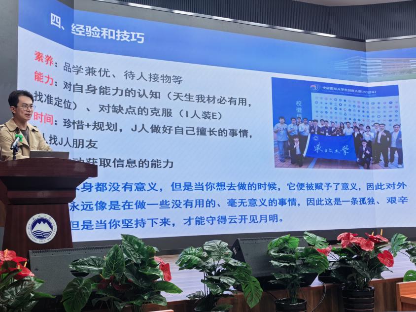 结合自身的创新实践经验与技巧,崔秀文详细解读了学校政策,并深入介绍了创新训练项目和各类竞赛,包括申报流程、参赛要求和注意事项。崔秀文认为个人能力定位和克服缺点对于创新实践的顺利开展具有重要价值。为了吸引更多学生参与创新实践,他分享了获取大学生创新项目和竞赛相关信息的渠道,以及如何借助东大平台了解老师的研究方向。详实的讲解为学生提供了一个清晰的行动蓝图。