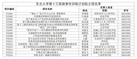立项成功的项目组请填写附件:《东北大学第十三批探索性研究训练计划项目合同书》,双面打印、一式两份,1月6日前提交创新创业学院项目部(科学馆209房间)。
