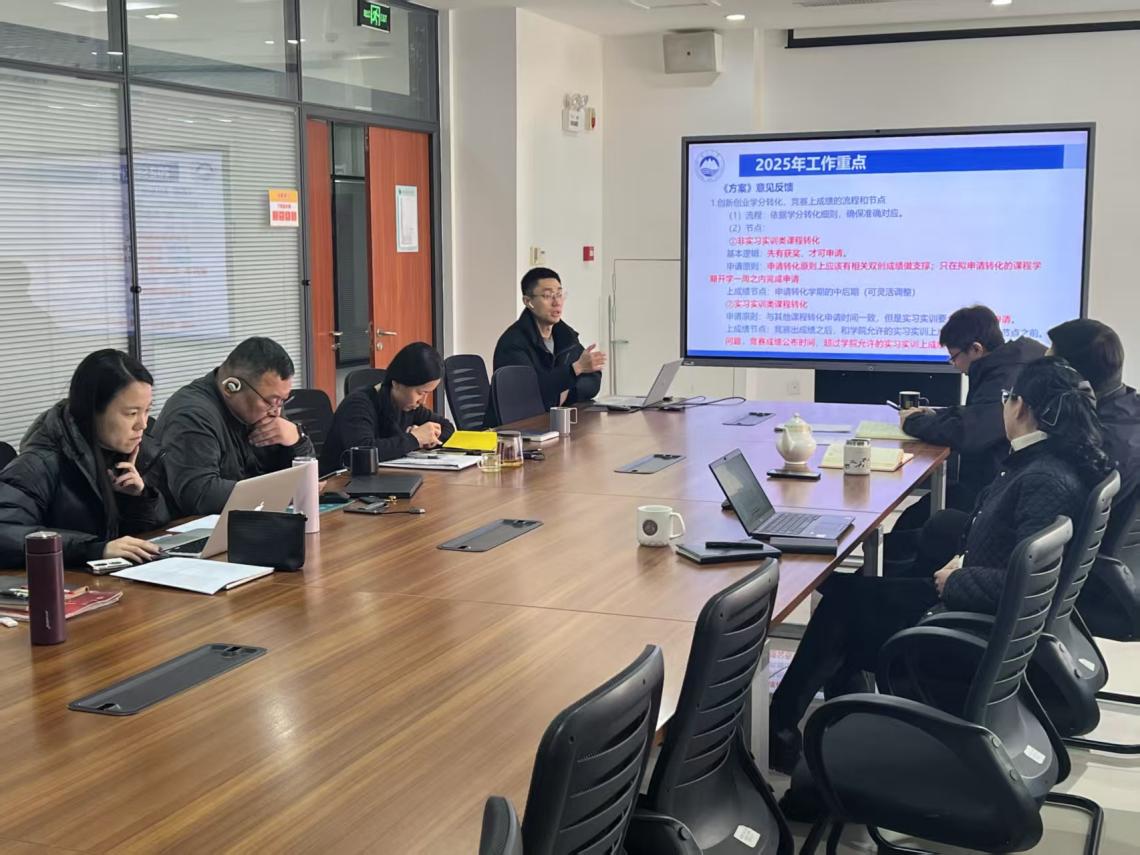 会上,各科室负责人汇报了2025年重点工作、2025-2027年三年发展规划,围绕2025年重点任务目标提出创新工作思路,并重点研讨了三创五育一体化拔尖创新人才体系建设实施方案。与会人员围绕创新创业实践学分内容、学分转化流程、创新创业实践指导教师工作量认定等问题展开了热烈交流研讨,并提出了针对性的改进建议和措施。