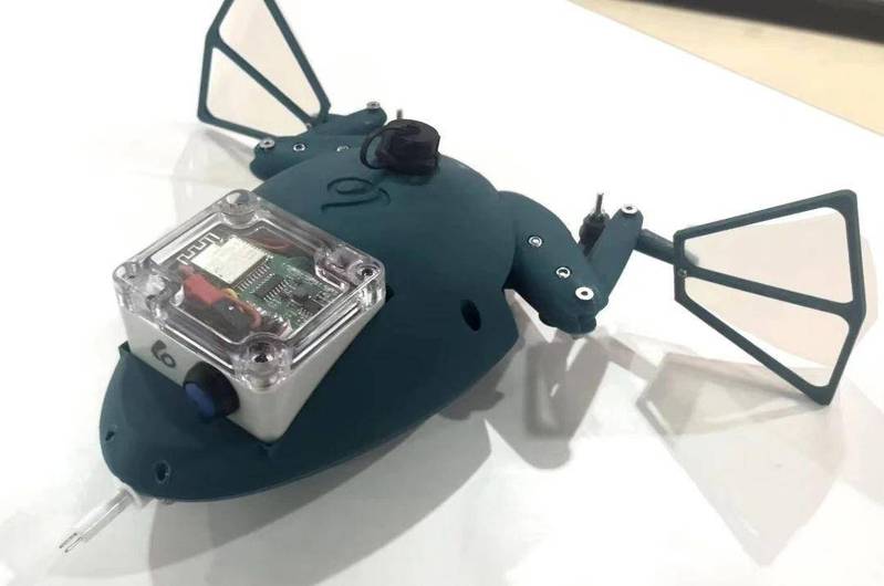 “传统的带涡轮式的水下机器人存在着噪音大、对水体扰动大、严重影响水下生物生活的缺点,我们从2022年开始就想通过制造一种仿生的水下机器人来完成水产养殖中水质监测和清理的任务。”团队成员段昱冰介绍。