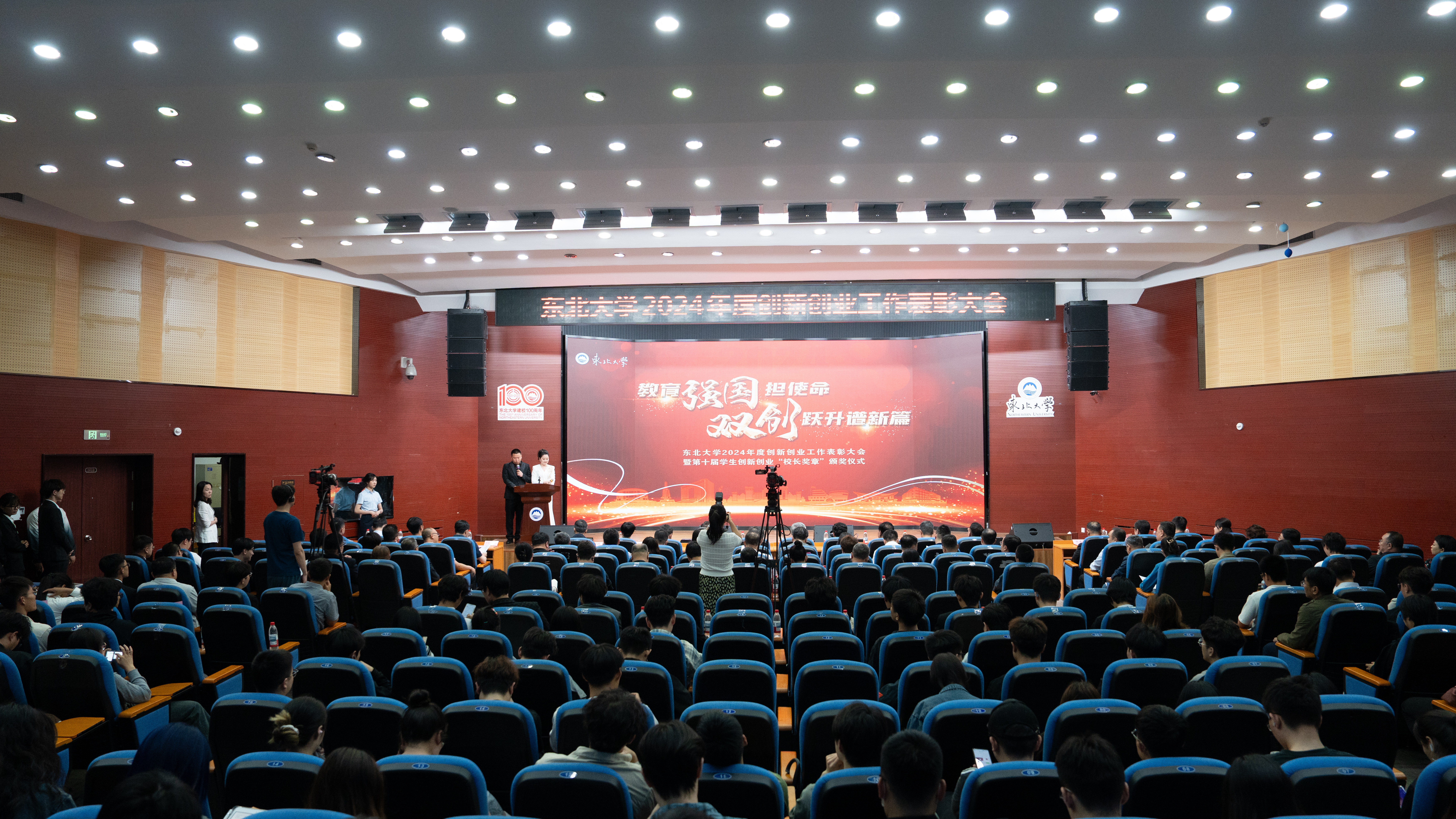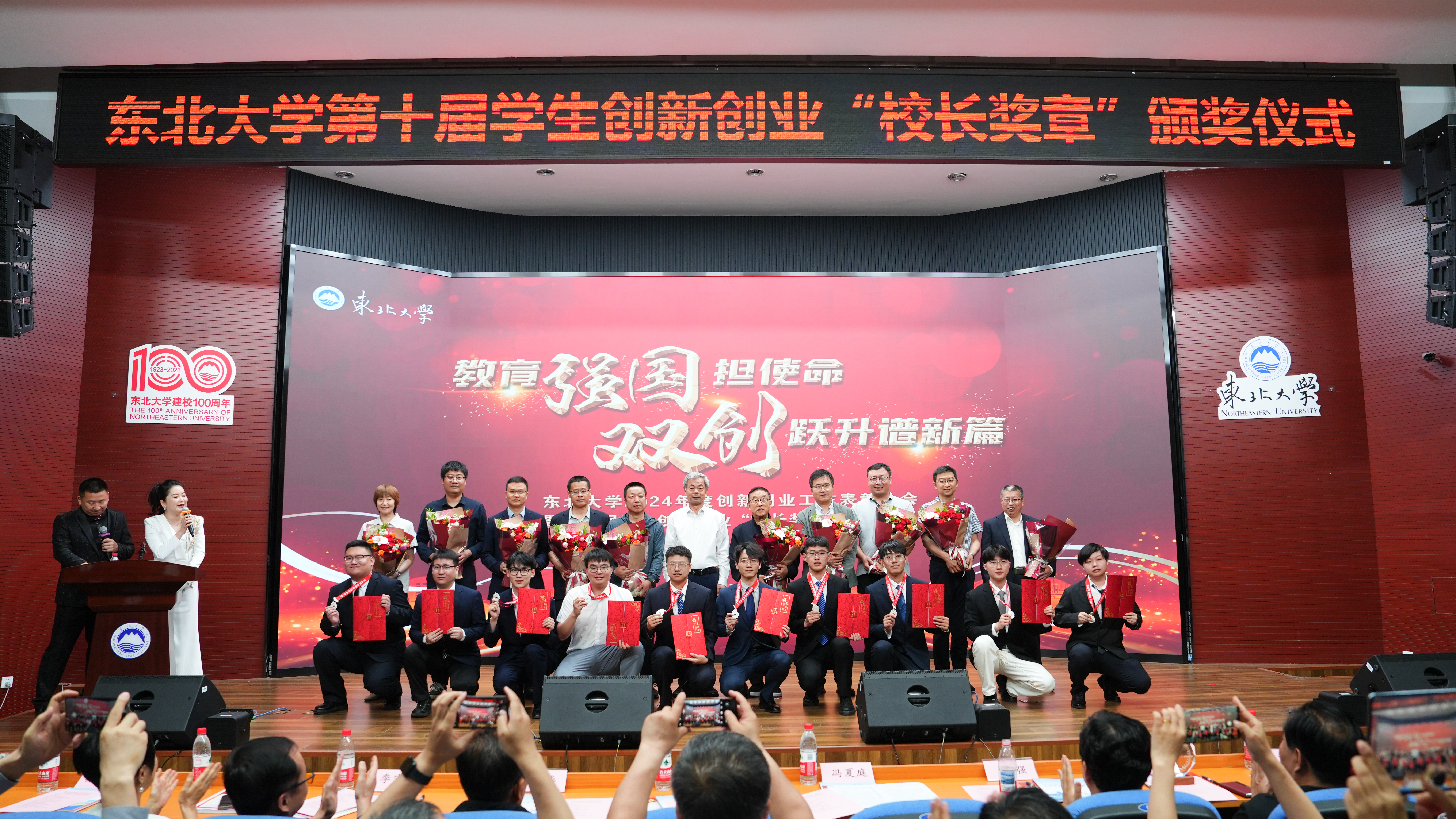 6月3日晚,“教育强国担使命 双创跃升谱新篇”东北大学2024年度创新创业工作表彰大会暨第十届学生创新创业“校长奖章”颁奖仪式在南湖校区科学馆201建龙学术报告厅举行。东北大学校长、中国工程院院士冯夏庭,中国工程院院士柴天佑,东北大学党委常委、副校长王强出席颁奖典礼,校内外指导教师代表、获奖师生代表等共计300余人参加活动。颁奖典礼在东大双创哔哩哔哩平台同步直播。