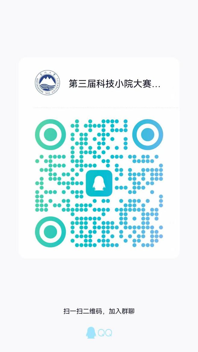 请有意向参赛的同学务必实名申请(备注学院、姓名、手机号)加入校赛QQ交流群942489679,后续比赛事宜将在QQ群内通知。扫一扫二维码加入群聊: