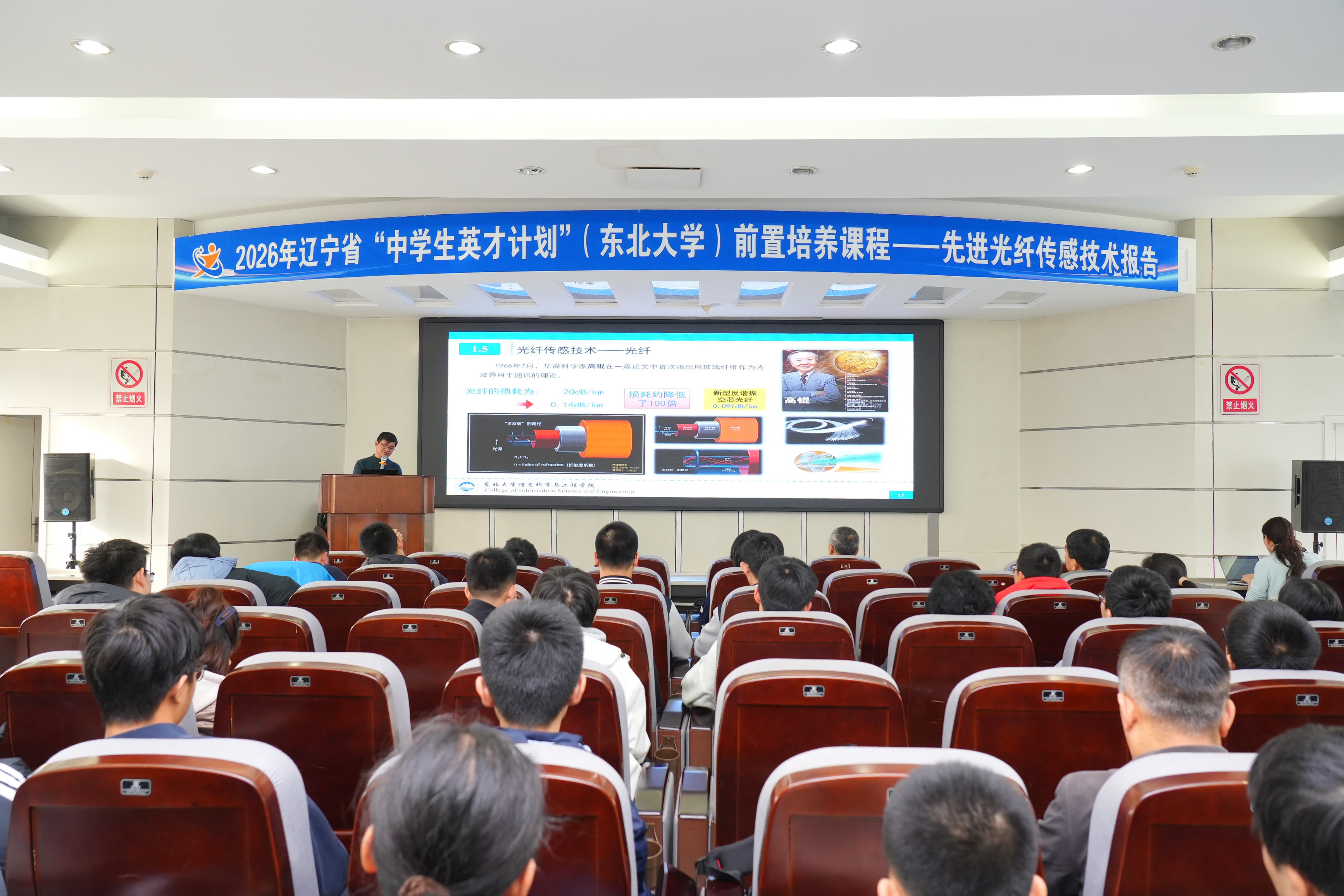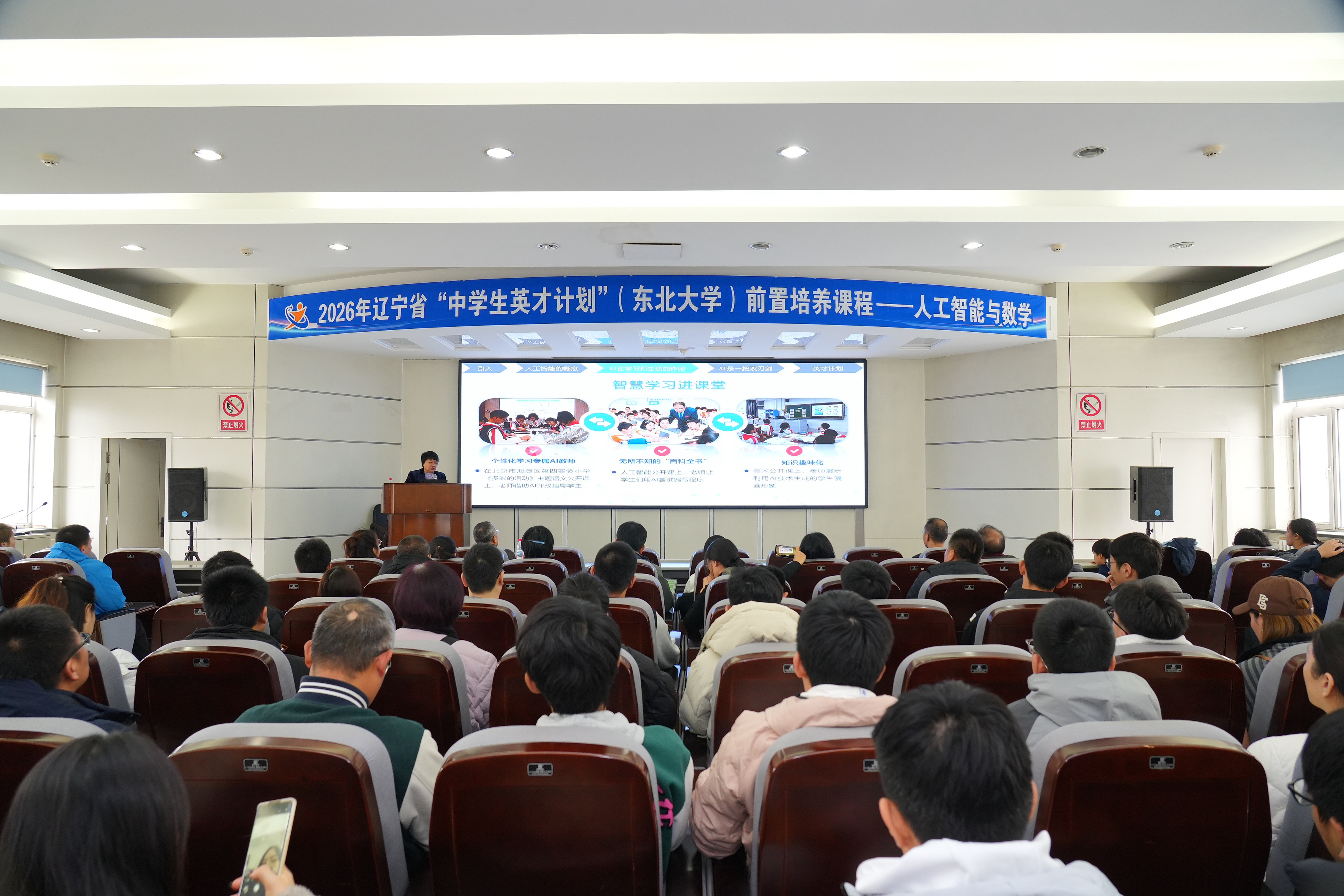 11月16日,东北大学2026年辽宁省“中学生英才计划”前置培养数学、物理专场活动在南湖校区EPM实验室四楼学术报告厅举行。活动聚焦数学与物理学科前沿,吸引东北育才学校、沈阳市第二中学、沈阳市第二十七中学、沈抚育才实验学校等中学一百余名优秀学子、家长及中学领队老师参加。