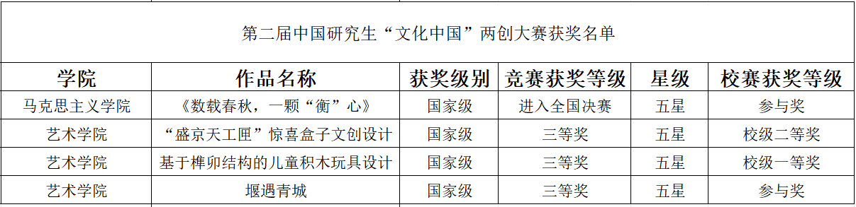 2025年12月5日至7日,由教育部学位管理与研究生教育司指导,中国学位与研究生教育学会、中国科协青少年科技中心主办,天津师范大学承办的第二届中国研究生“文化中国”两创大赛全国总决赛在天津师范大学隆重举行。东北大学参赛队伍凭借对中华优秀传统文化时代价值的深挖与创新表达,以创意构思与鲜活呈现彰显文化“两创”实践能力,斩获全国二等奖1项、三等奖3项。